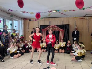 Der anschließende Showtanz der Kindergarde stand unter dem bunten Motto „Zirkus Halli Galli“ und brachte viel Schwung und gute Laune in den Saal. Im zweiten Teil des Programms zeigte das Prinzenpaar nochmals sein tänzerisches Können mit einem energiegeladenen Rock’n’Roll zu „Hit the Road Jack“.