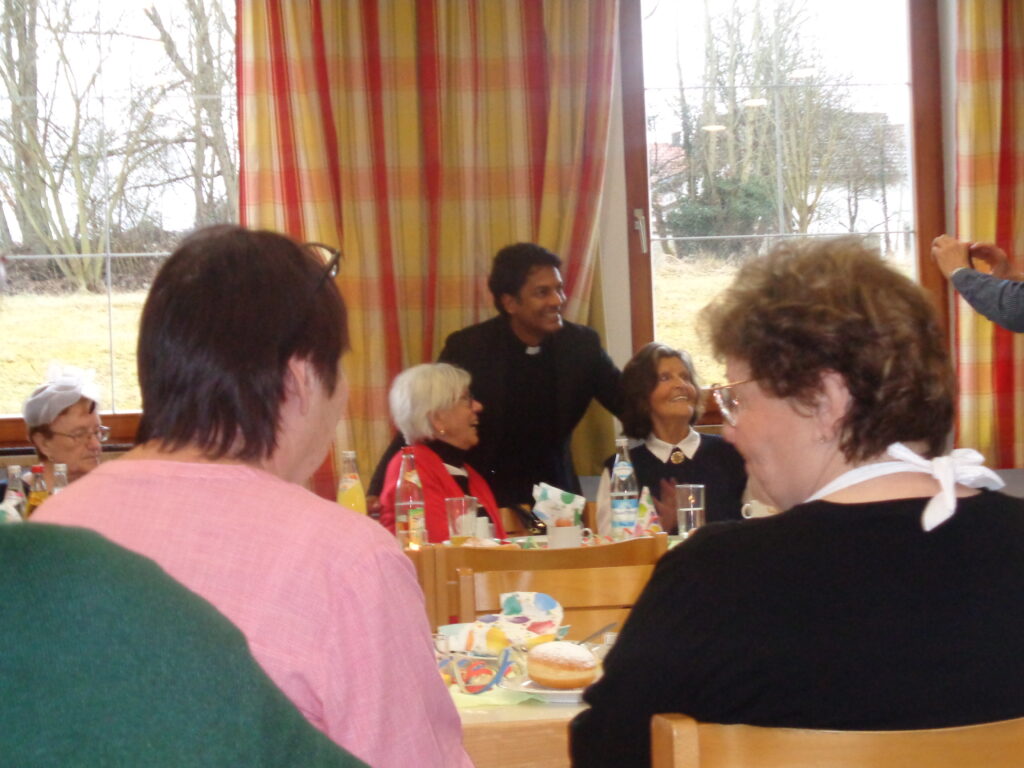 Auch Pfarrer Tony richtete persönliche Worte an die Gäste. Im Anschluss an seine Begrüßungsrede nahm er sich Zeit, von Tisch zu Tisch zu gehen und mit den Besucherinnen und Besuchern ins Gespräch zu kommen – eine Geste, die sehr geschätzt wurde.